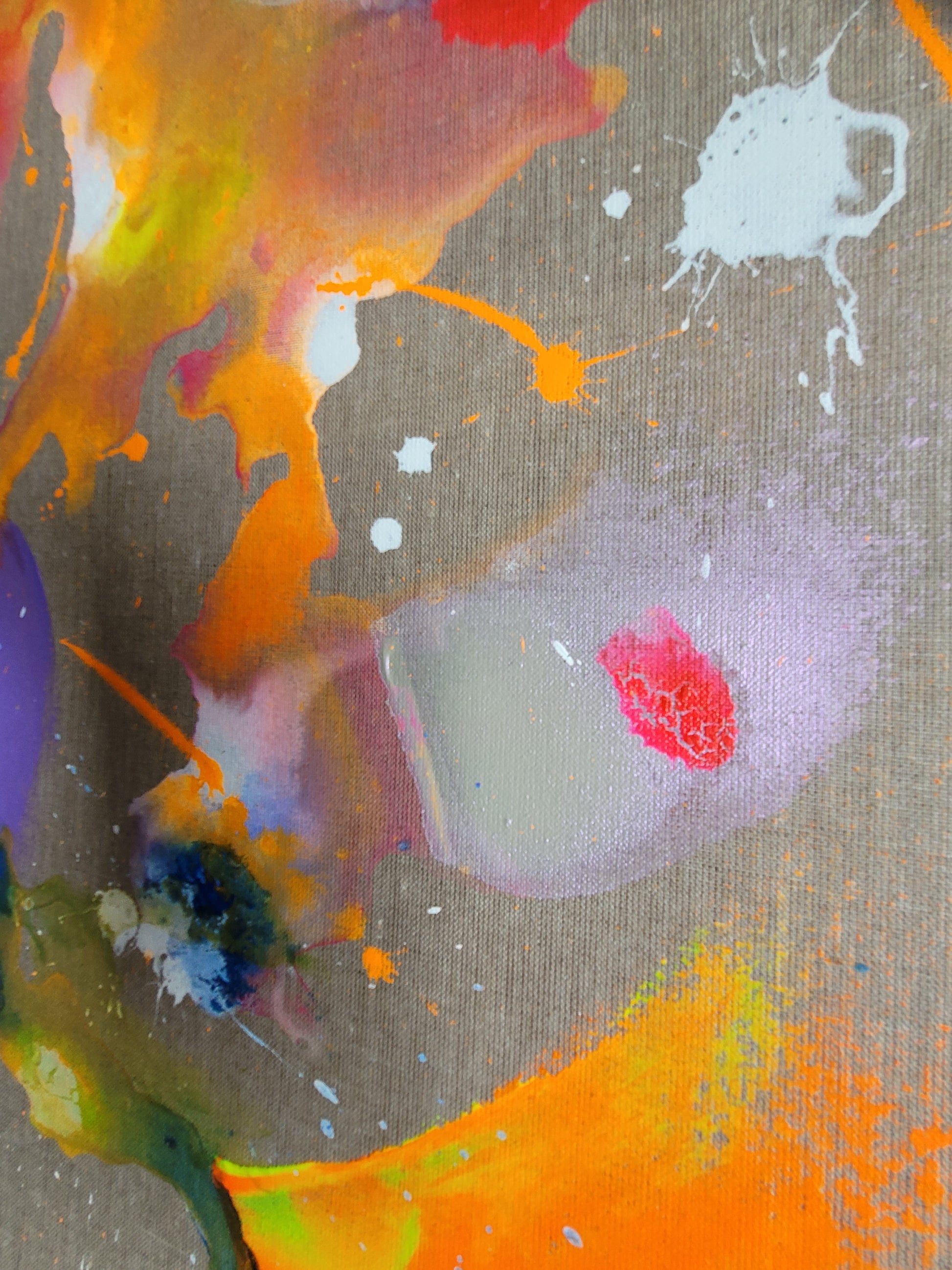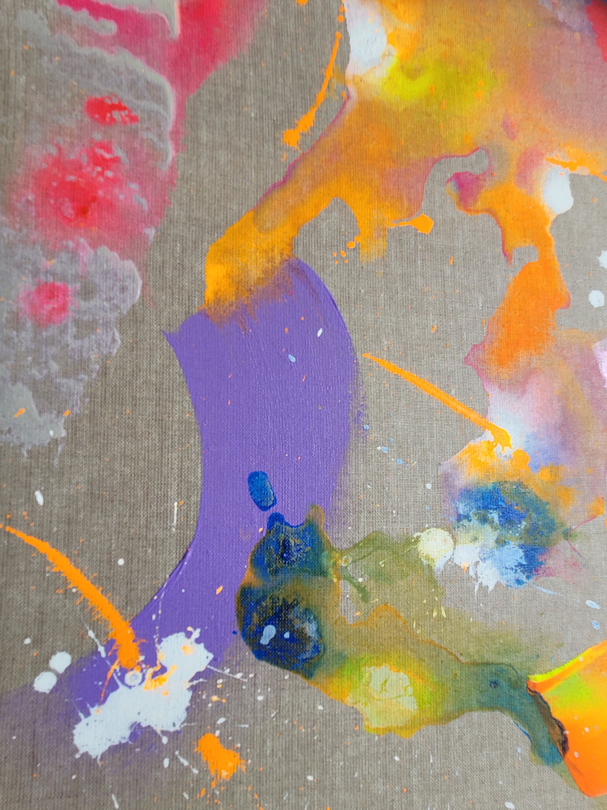 Die Serie "Energiefluss" lädt dazu ein, den Kopf loszulassen und sich dem Moment ganz hinzugeben. In intuitiven Schichten aus Farbe und Bewegung offenbart sich ein innerer Raum, der frei ist von Denken – und voller Energie. Jedes Bild ist Ausdruck eines Prozesses, bei dem nicht der Plan, sondern der Fluss führt.